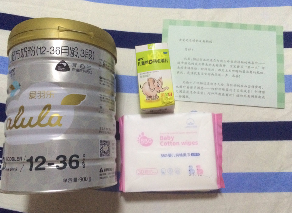 奶粉很大一罐,奶源可追溯,配方很适合宝宝,所需的各种营养,打算给大宝喝。钙片造型好看,容易吸收,宝宝很喜欢,比液体钙好,是个值得信赖的牌子,以后也会给宝宝买这款钙片,棉柔巾不含荧光剂,遇水软软的,可以很放心的给宝宝用。