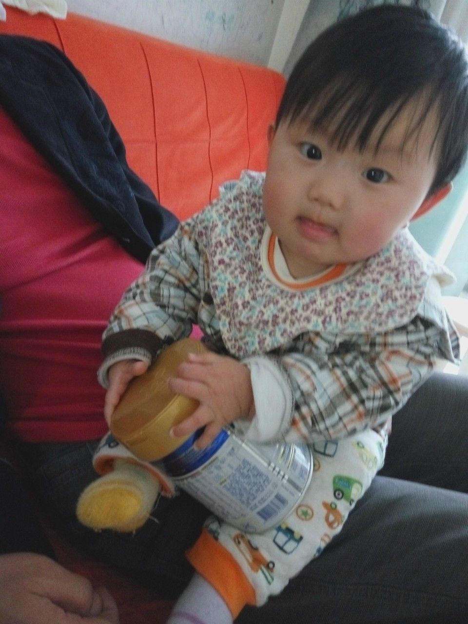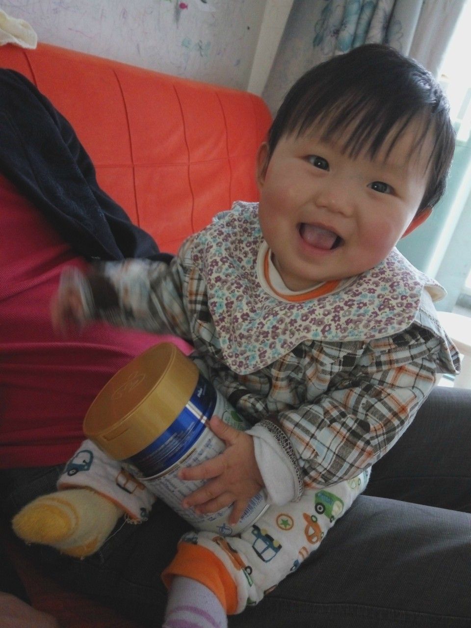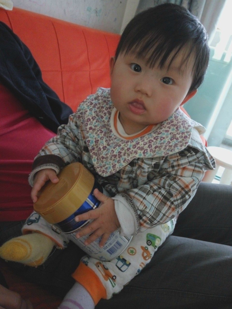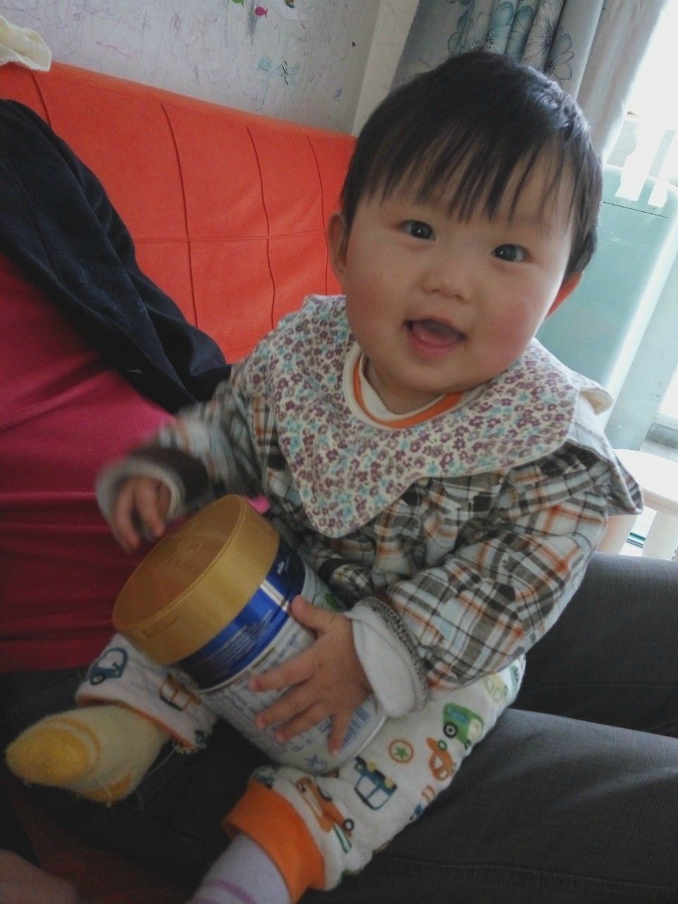 看,我们家的小公主对这罐奶粉是爱不释手呢!