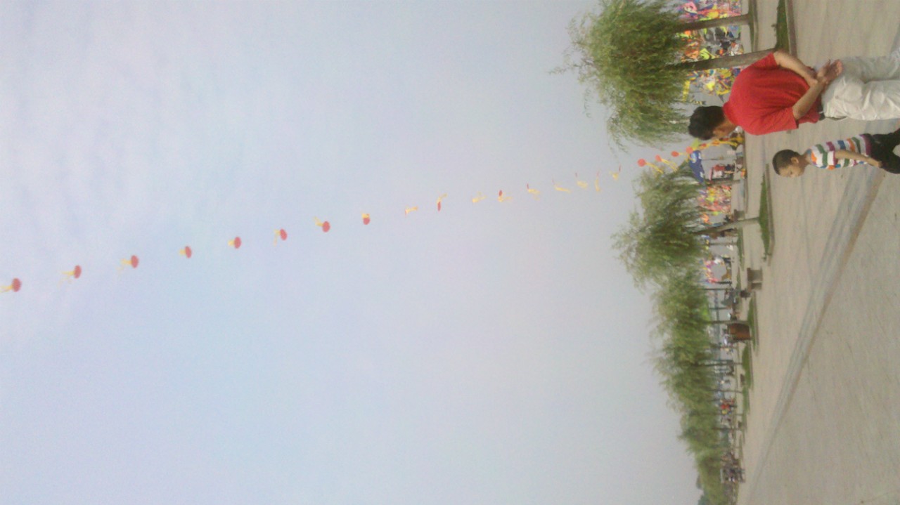 看完化石,回头就看到有个老爷爷在放这长长的风筝!