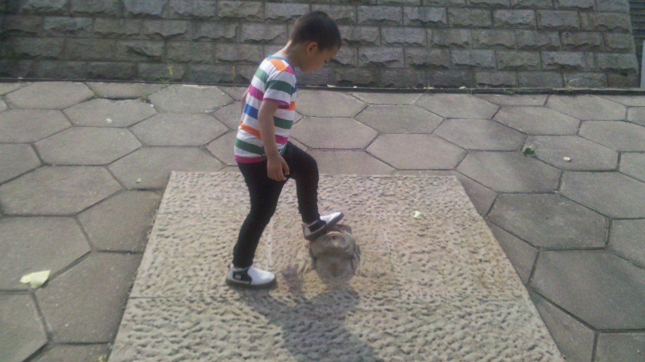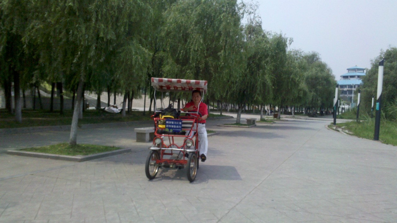 不忍我两腿被蚊子咬的包包,东东只好作罢,回去继续踩车!