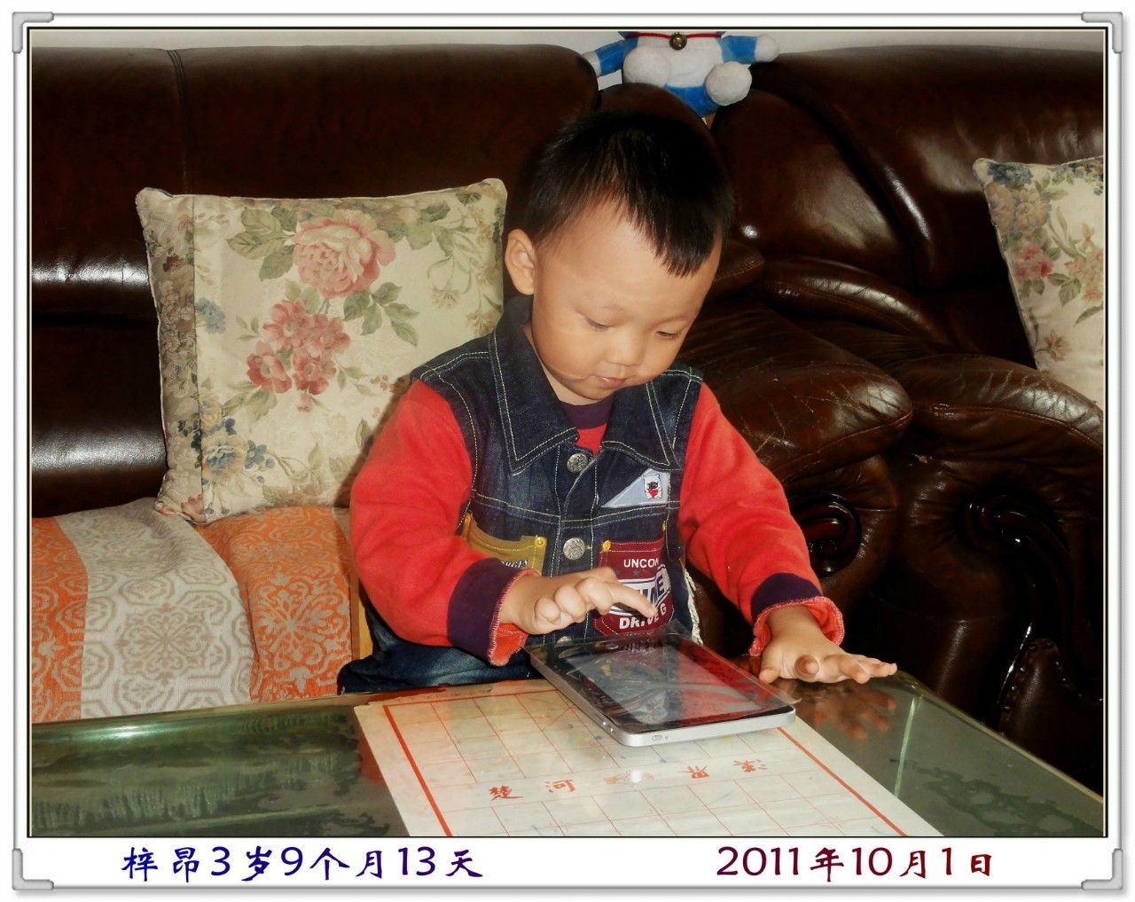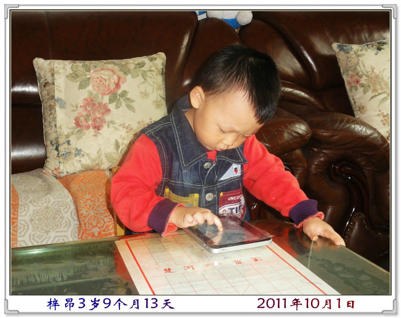 上午,爸爸和妈妈逛街去了,我和爷爷奶奶在家里玩,爷爷订购的平板电脑到货了,这又让我多了一个“玩具”。这部平板电脑像一本书那么大,精致简约,极致纤薄,是全屏触摸的,可以上网、看电子书、听音乐、玩游戏、看电影等。因为之前我曾经玩过舅爷爷的一部平板电脑,所以知道这个电脑很好玩。还没有等爷爷看看它的功能和使用说明,我就自己打开了,而且竟然找到了游戏“海岛连连看”和那个会学话的“猫汤姆”,在茶几上玩了起来。爷爷说他还没有学呢,我说:“爷爷,我会,我教你。”
