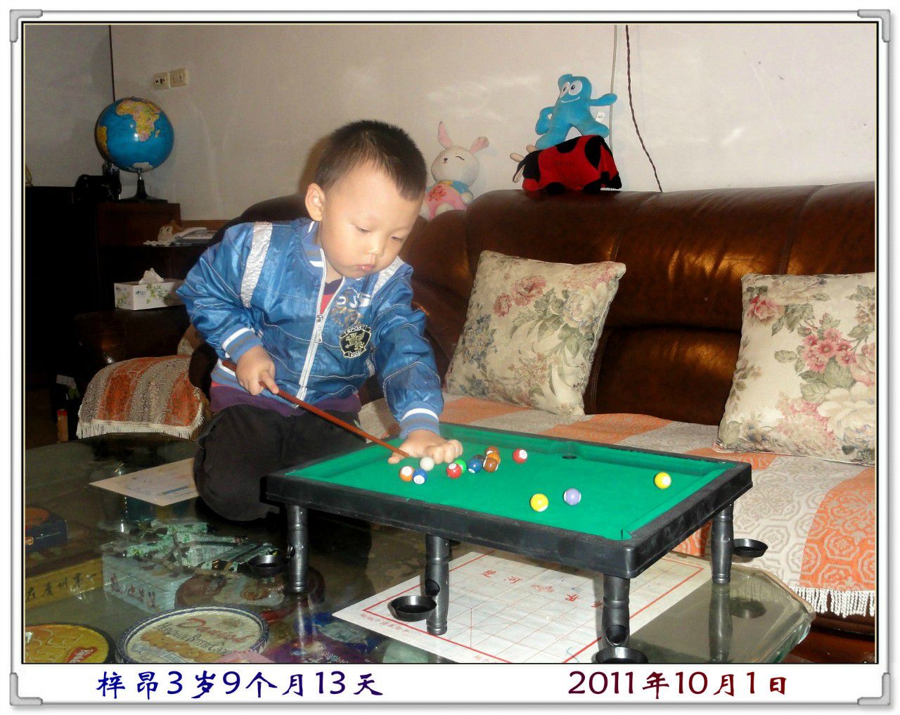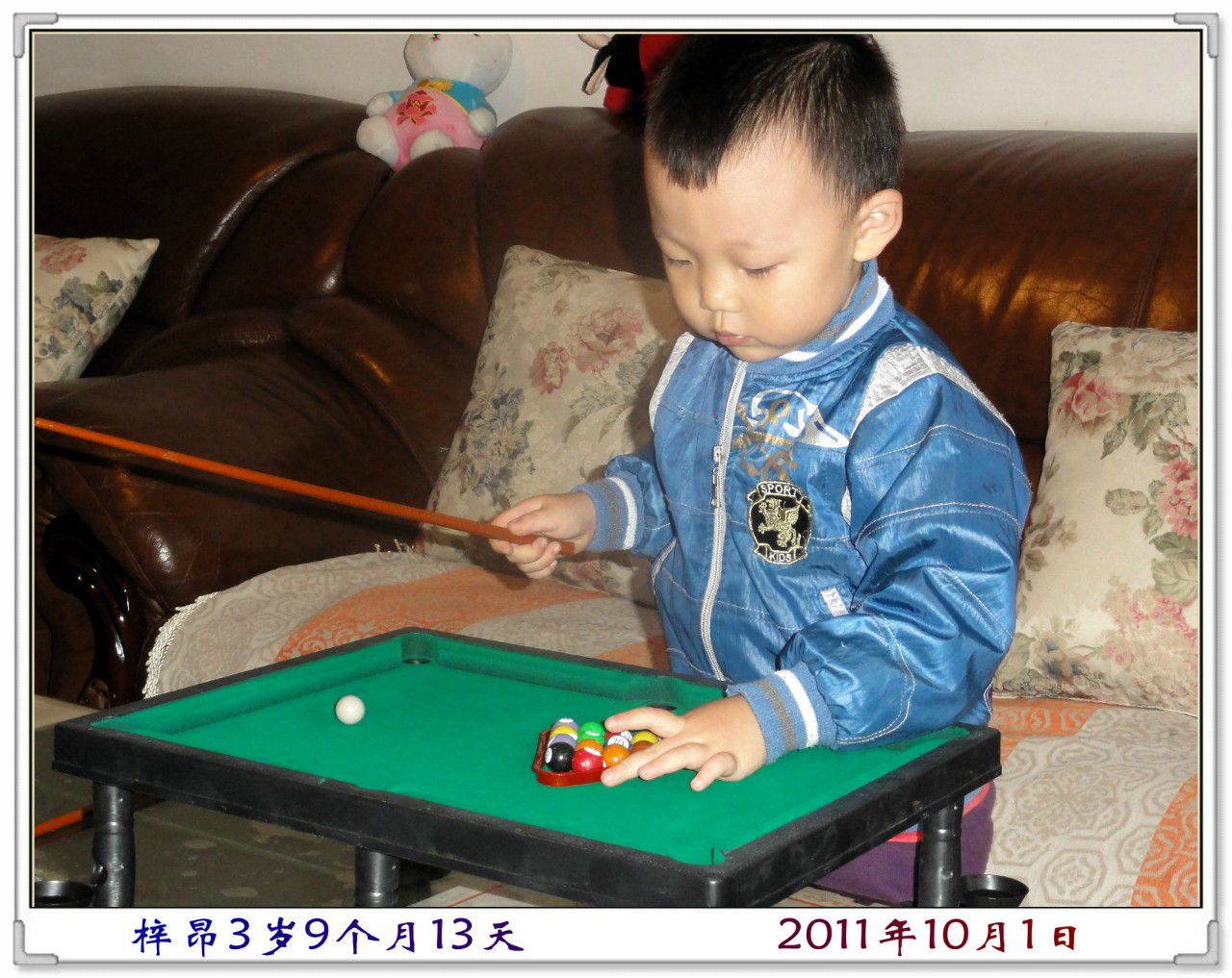 我喜欢看电视里面斯诺克比赛,如果体育频道由转播,被我突然看到了,就谁也不能在换台了,我虽然看不懂,但我喜欢那些很绅士的叔叔打球的样子,还喜欢看那些小球被打进洞里。妈妈给我买了这个“迷你台球”我也可以学着用杆打球了。
